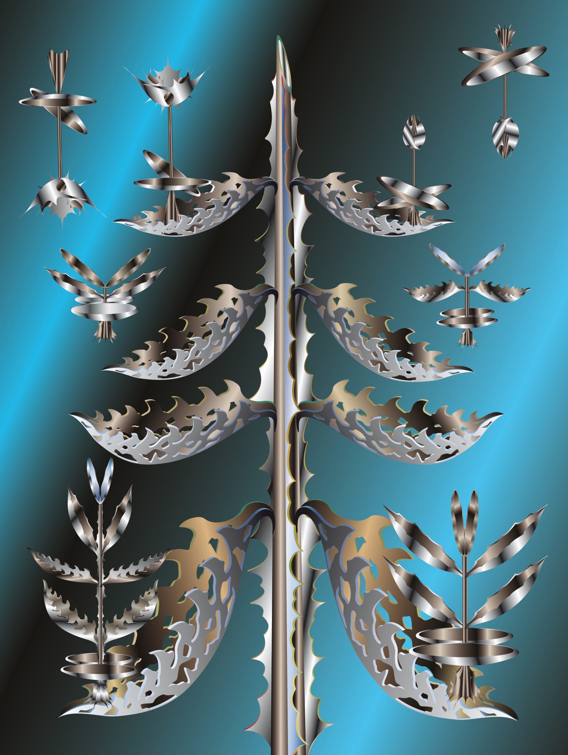 De Flowerbombs zijn statische, onbuigzame artificiële plantmodellen, die hun kracht ontlenen aan hun materiaal metaal.