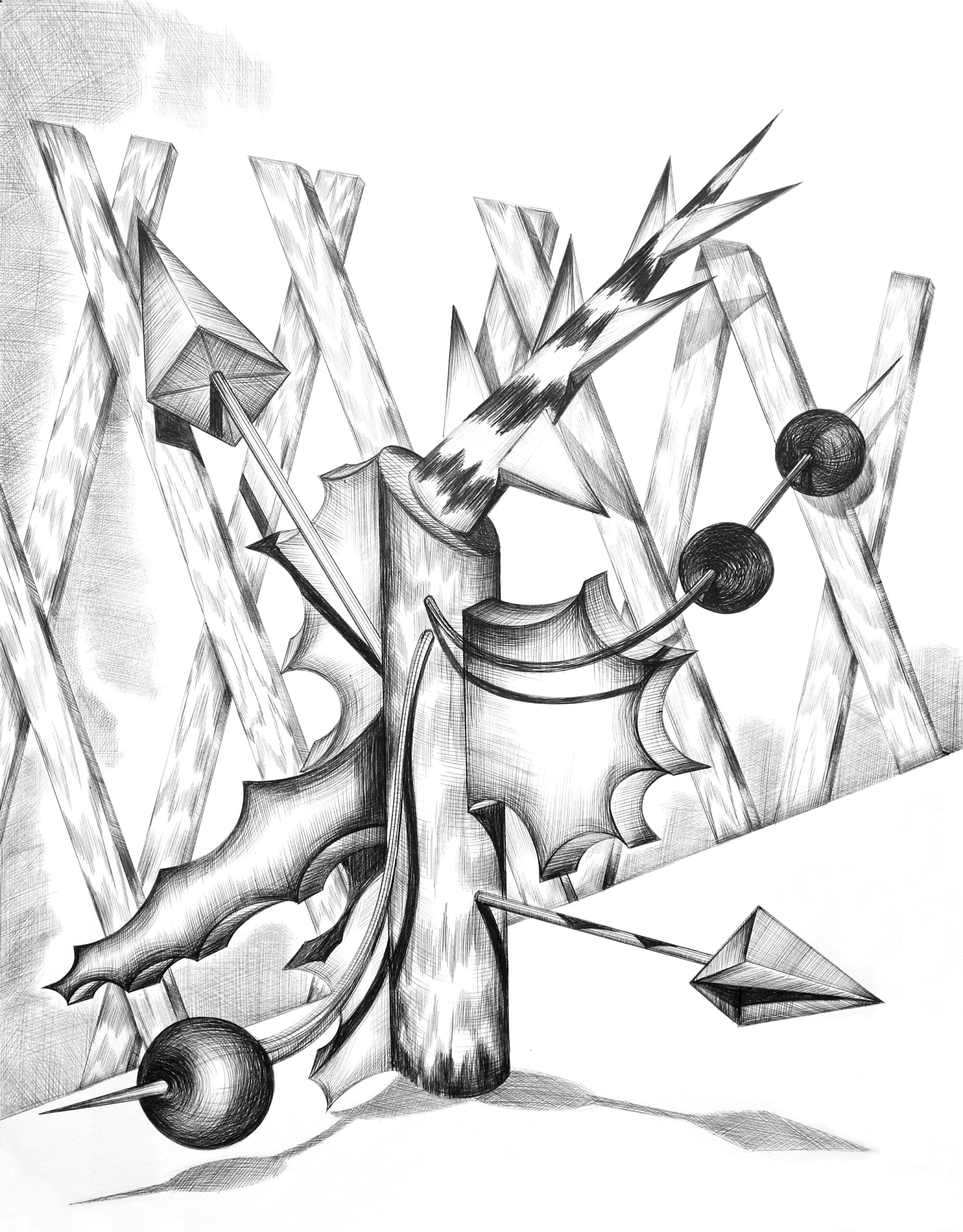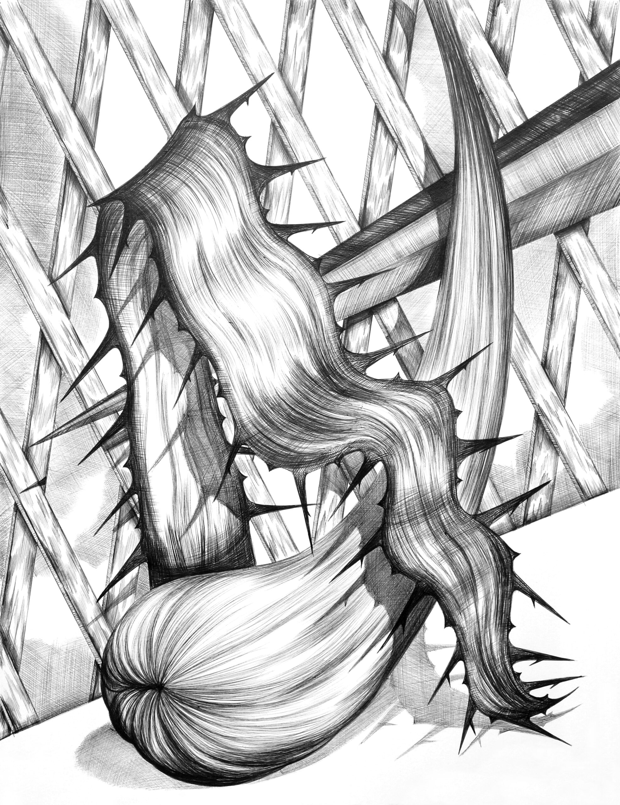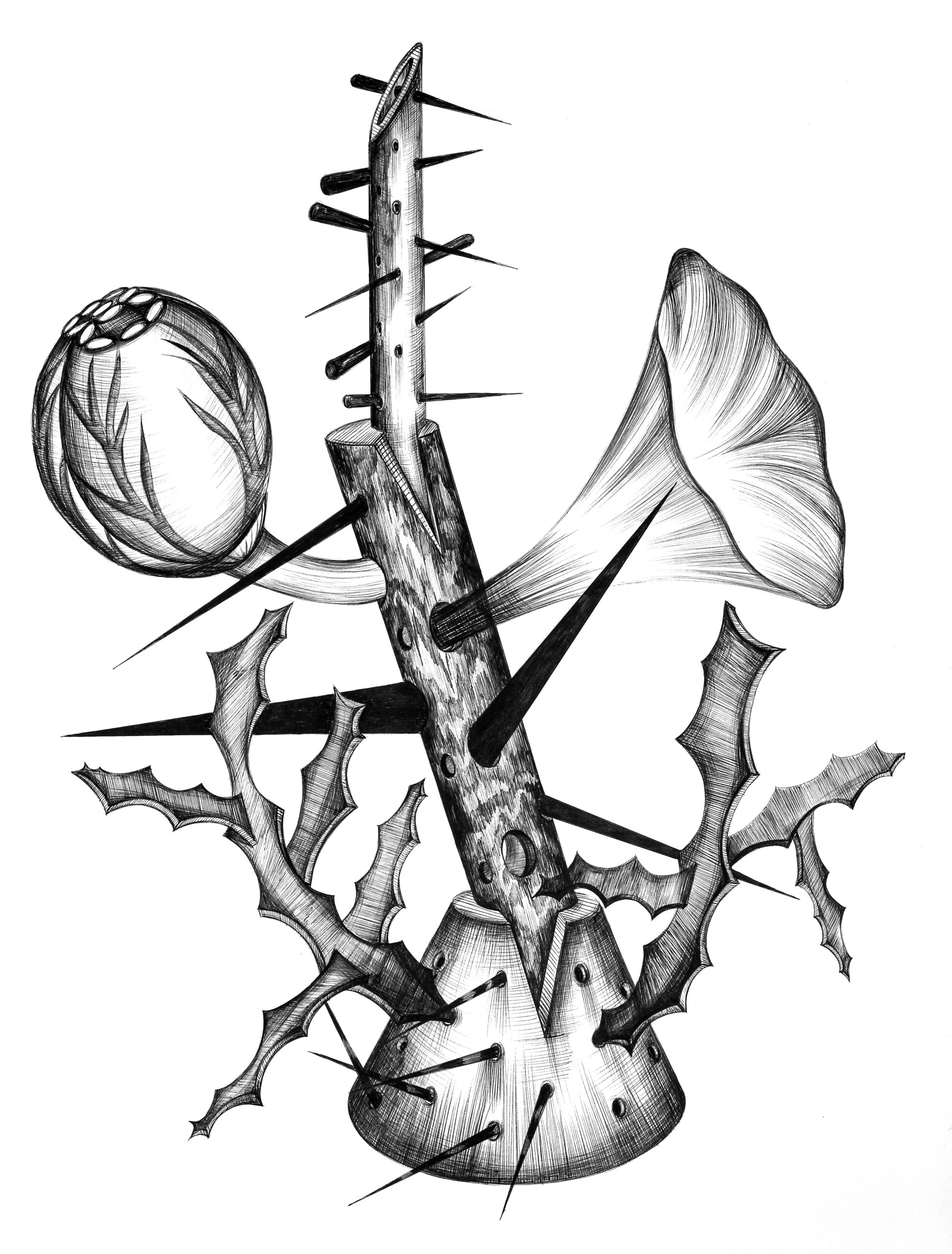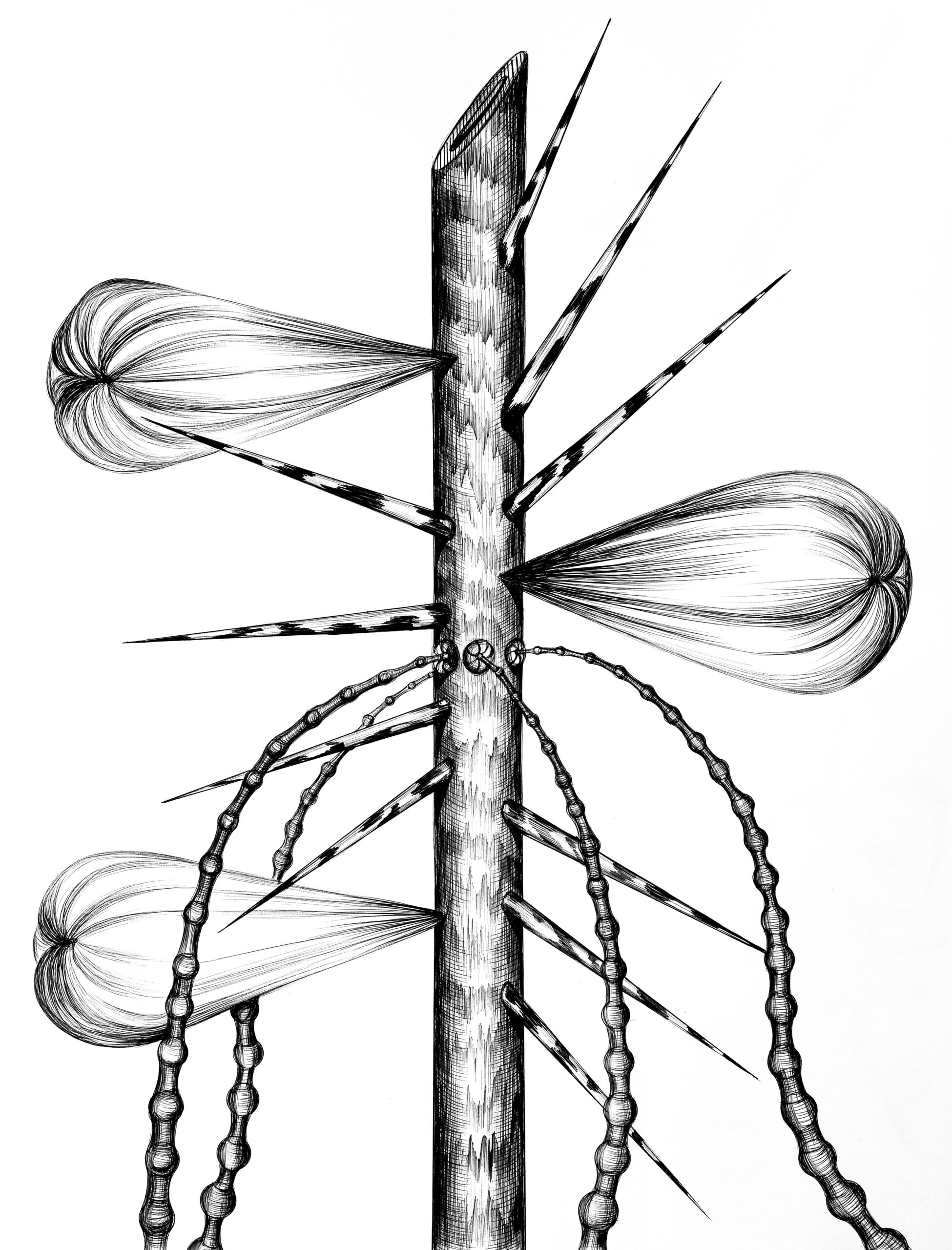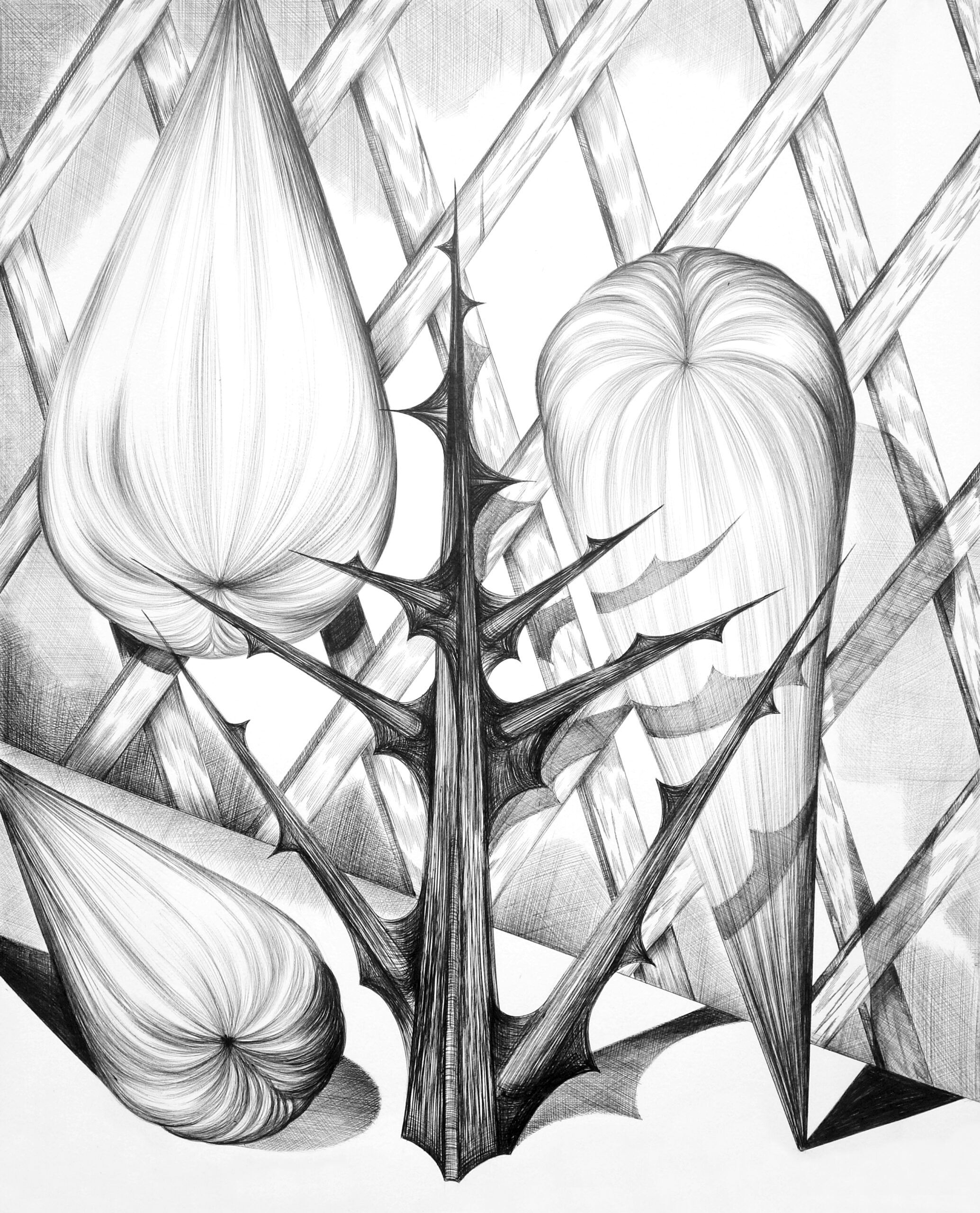 De Flowerbombs zijn statische, onbuigzame artificiële plantmodellen, die hun kracht ontlenen aan hun materiaal metaal.