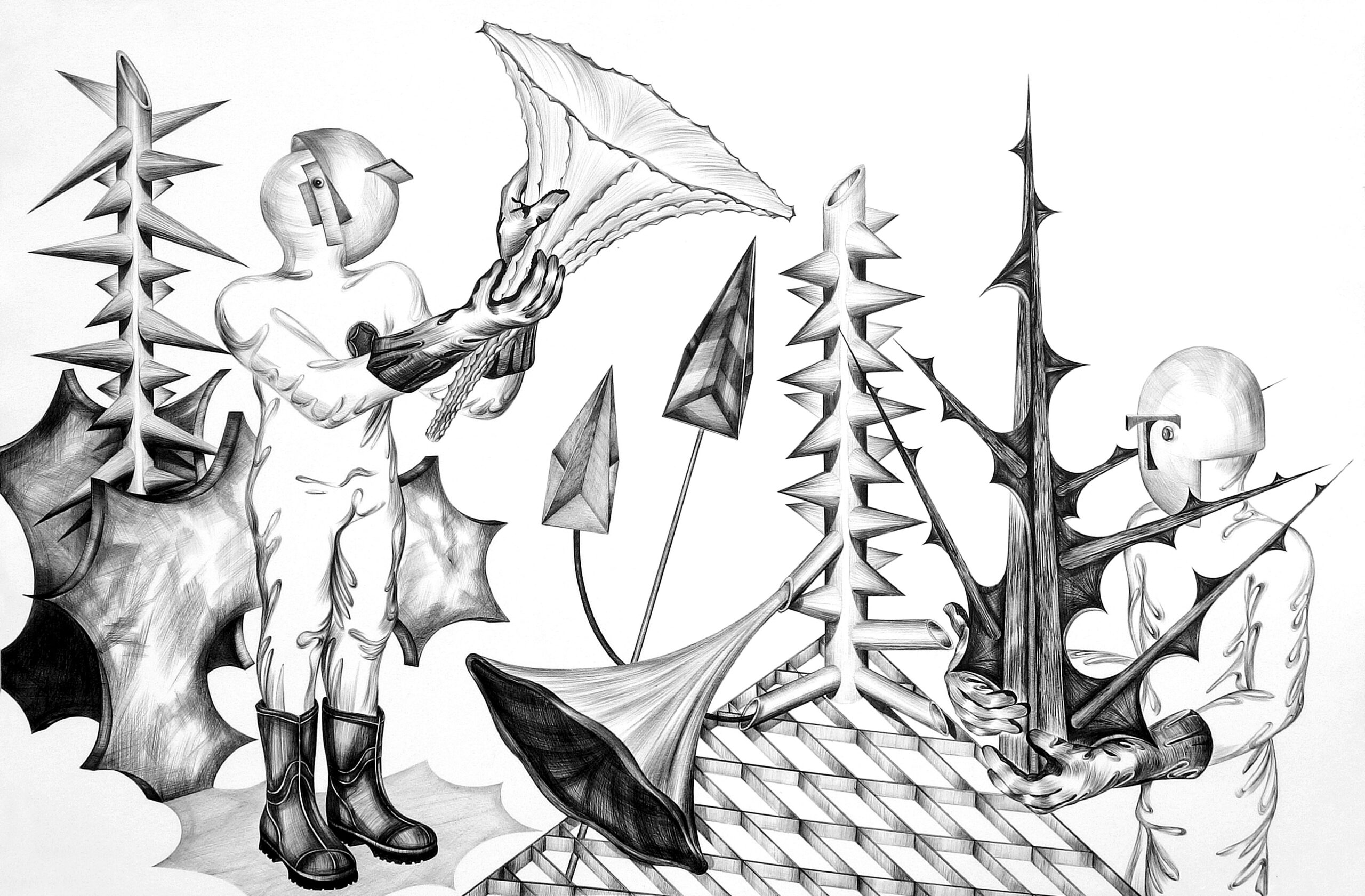 Geïnspireerd op de natuurlijke plant Mother of Thousands worden metalen broedplantjes als kleine bommetjes afgeworpen en verspreid in een onbestendige atmosferische tijdloze ruimte. Hybride plantmodellen als fictieve voorlopers die niet in de werkelijkheid kunnen bestaan, maar wel in de fictieve vrije wereld in het beeldverhaal TALES OF TOMORROW.